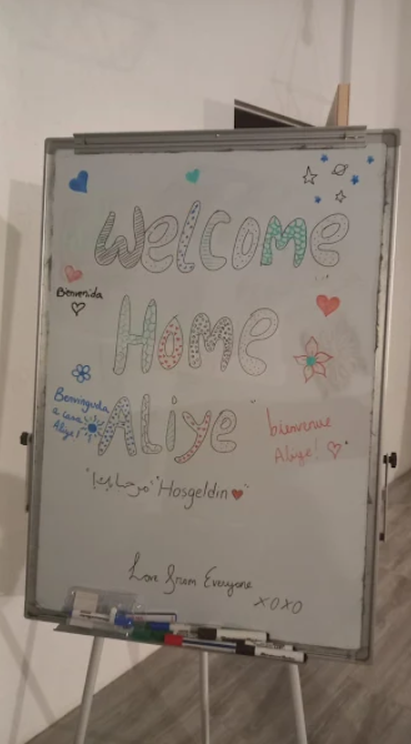 I’ve been in Romania for about a month now. I think I’ve adapted quickly to an experience that I came with a lot of excitement. The process until I arrived wore me out a lot. I am the last volunteer to come to Târgu Frumos. But my other volunteer friends, whom I had not met face to face before I arrived, motivated me a lot. They told me that I would have no problem coming and that they were waiting for me here. When I came home, I saw the sign ‘Welcome home Aliye’. They welcomed me very warmly.