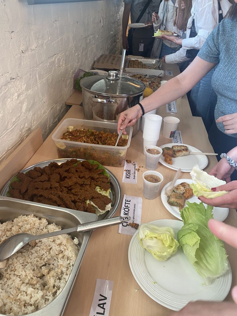 One of the highlights of the event was the meal. Our friends, both Estonian and other nationals, who heard about the culture night, said that they were looking forward to trying Turkish food. By the way, kebab and baklava are very popular in Estonia. I should mention that especially baklava has an exceptional place. Our most crucial food supporter was Türqi BBQ. Hasan Çetin owner of Türgi BBQ said he would help us from the first moment we expressed our opinion. Our other food supporter was the Estonian-Turkish friendship center. Finally, as the organizers, we completed the meal with lentil meatballs.