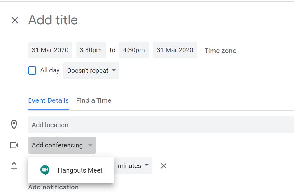 2. Then, thanks to a connection with the office team, we got to know about Google Meet https://meet.google.com/– part of G Suite for non-profits that allows you to host team meetings for your collaborators and people from outside your organization. It gives you all you need during a usual team connection – sharing your screen, having a chat or recording a meeting. Some drawbacks are that you cannot simply shedule a call with Google Meet – to do so, you have to go to your Google Calendar, schedule an event and add conferencing details – then you have an automatically generated Google Hangouts Meet link that you can share with the prospective call participants.