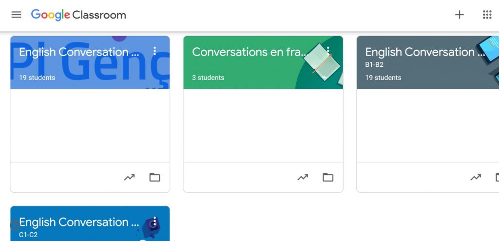 If you are sharing your screen, you theoretically do not need to share any materials. Theoretically. We are all already aware that as so many parts of our lives went online worldwide, the connection standards are in most of the cases far from perfect. So, if some participants fail to join your classes because their Internet connection is not sufficient, cannot hear you or see your screen as frozen most of the time, or face any other type of technical difficulties – it is good for them to have acces to the materials from the lesson after the class. Also, it makes it much easier and more effective for the coordinator of the class. From the beginning, we have been using Google Classroom ( https://classroom.google.com/ ) and can sincerely recommend it as a nice tool for teachers. You can create here a stream for every class and manage materials in folders. Before making them visible to the participants of your courses, you can co-create them with another teacher (you can add collaborators with this role if you co-organize courses), save them as draft, schedule a material to be published on a particular time and edit it (as a teacher) all the time – before and after publishing. You can also share announcements with your class, i. e. share the link to the next video class.
