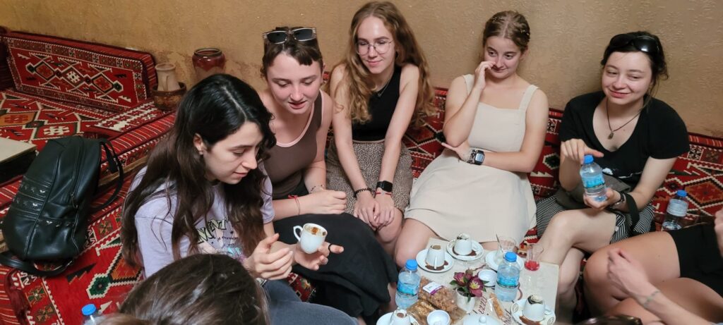 After arriving in Izmir, I was introduced to other volunteers that I was going to be roommates with and my new home in Buca. I arrived at the evening so nothing much happened on the first day, but the next days were interesting! We were exploring the city with other volunteers from other flats, going to the office and already working in the Kültürpark in promoting our association within Turkish people! After that, we had some cultural events for us (volunteers) to get to know Turkish culture. We were going around the city, trying Turkish coffee, tea, snacks etc. Of course, there was also a time to try Turkish food, which in my opinion testes amazing. We were also meeting other Turkish volunteers and they were showing us the city.