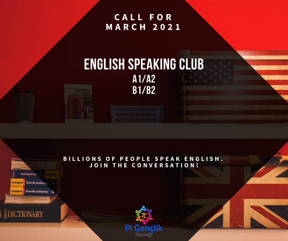 Pi Gençlik Derneği olarak gençlerin uluslararası fırsatlara ve bilgiye erişimini, uluslararası alanda sosyal uyumlarını desteklemek için İngilizce ve diğer yabancı dillerde konuşma becerilerine yönelik aylık konuşma kulüpleri düzenliyoruz. Konuşma kulüplerimiz sadece 15-30 yaş arasındaki bireylerin başvurularına açıktır. Ücretsiz konuşma kulüplerimize kayıt yaptırmak için uygun olduğunuz gün/gruba ait başvuru formunu doldurmanız yeterlidir. Her konuşma kulübü için 30 kişilik kontenjan bulunmaktadır. Kontenjan dolduktan sonra kayıt formu kapatılır ve yeni kayıt alınmaz. Online başvuru formunu doldurduktan sonra seçtiğiniz grubun ilk dersine doğrudan katılabilirsiniz. Kayıt yaptırmayan kişilerin derslere katılması mümkün değildir.