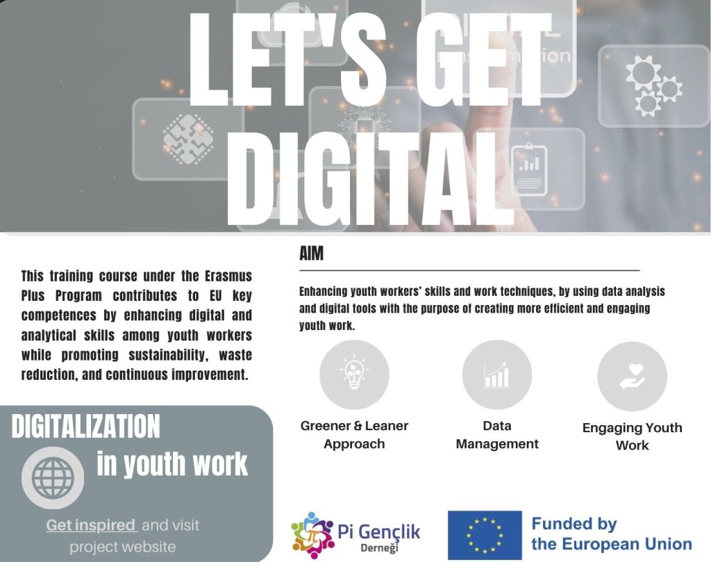 21-27 Eylül 2024 tarihleri arasında Romanya’nın Bükreş şehrinde gerçekleştirilen “Let’s Get Digital” projesi, Türkiye, Macaristan, İtalya, Letonya, Portekiz, İspanya ve Romanya (ev sahibi) gibi çeşitli ülkelerden katılımcıları bir araya getirdi. Bu proje, dijitalleşmenin hızla arttığı günümüzde, gençlik çalışanlarının bu değişime uyum sağlamaları ve gençlere daha etkili destek sunabilmeleri için dijital becerilerle donatılmalarını hedeflemektedir.