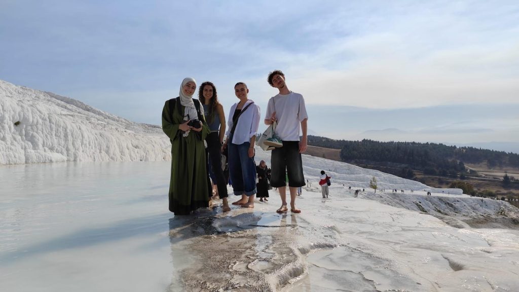 Sadece iki ay içinde Türk kültürünün birçok yönünü deneyimleme şansı buldum, ama daha keşfedilecek çok şey olduğunu biliyorum. Mesela, bir kına gecesine davet edildim — müzik ve dans dolu, harika bir etkinlikti! İzmir’deki önemli kültürel ve tarihi yerlerin yanı sıra başka şehirleri de gezdim. Samsun’a, varış sonrası eğitimi için gittim ve Türkiye’nin dört bir yanından gelen diğer gönüllülerle tanıştım. Sonra arkadaşlarımla Pamukkale’ye gittim. Doğal güzelliği ve antik kalıntıları büyüleyiciydi. İlk gün, İzmir’de bir yerel festivale katılmamdan, ulusal bayramlar ve etkinliklere kadar her an, bu ülkenin gelenekleri ve kültürü hakkında bir şeyler öğreniyorum.